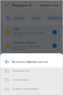 в нижней части экрана.Выберите файлы и папки, для которых нужно включить офлайн-доступ, нажмите последовательно