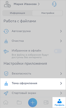 Для того, чтобы изменить тему оформления Диска: